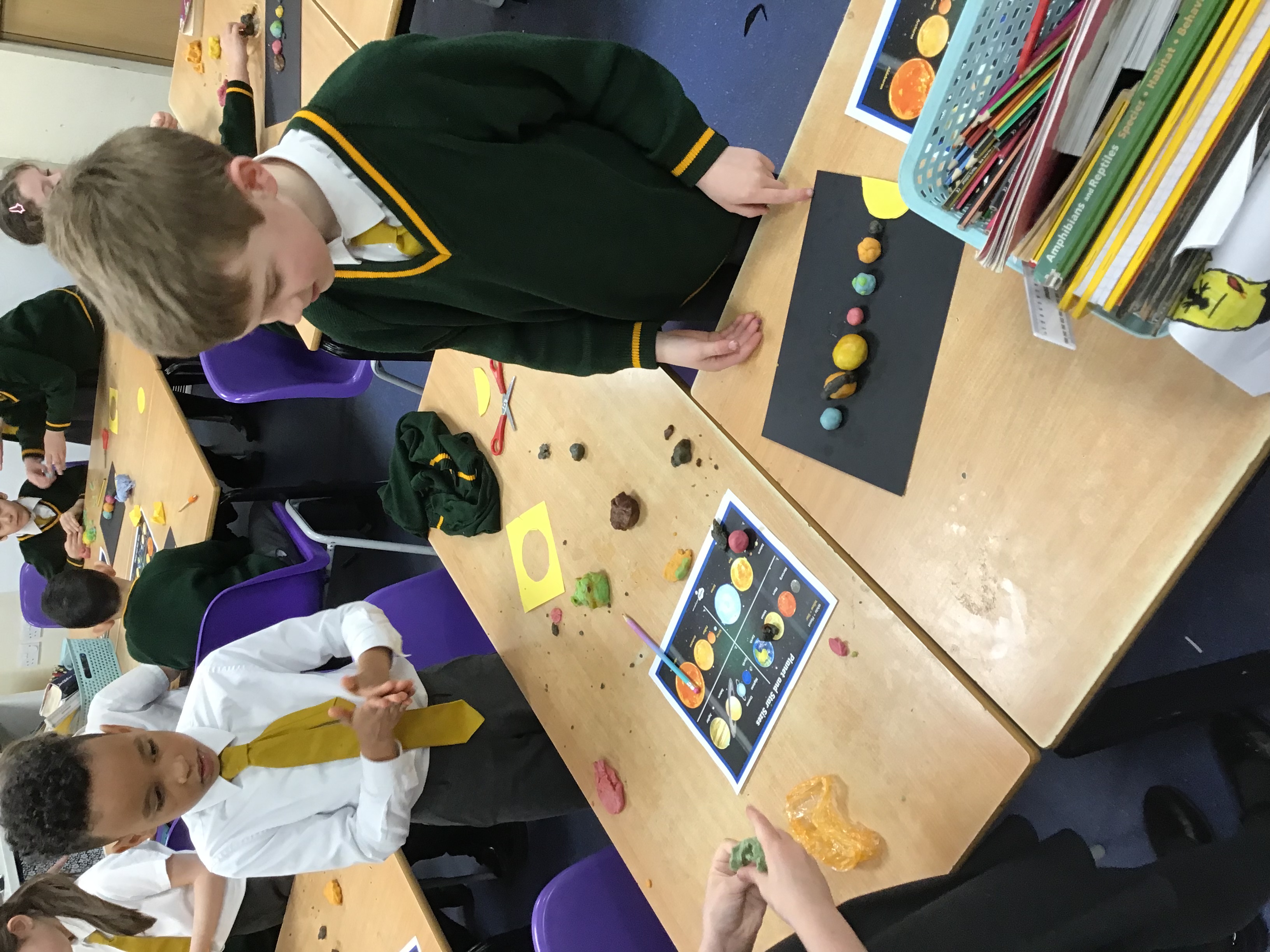 This afternoon Year 3 have been making their own Solar System out of playdoh. They had great fun working together and making sure they were all in the correct order.