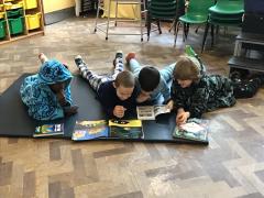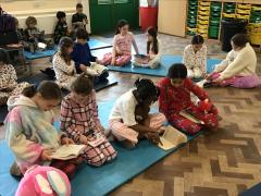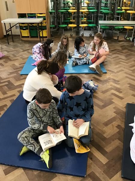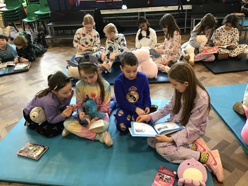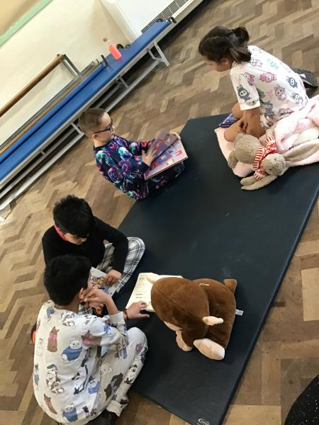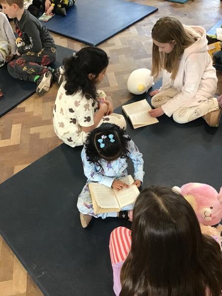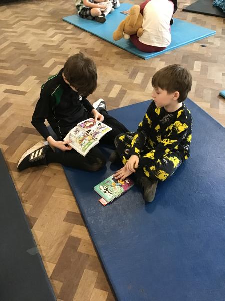 To mark World Book Day the whole school came in their pyjamas and brought a teddy and their favourite book. Each class teamed up with another class and they took it in turns to read their favourite story to each other.