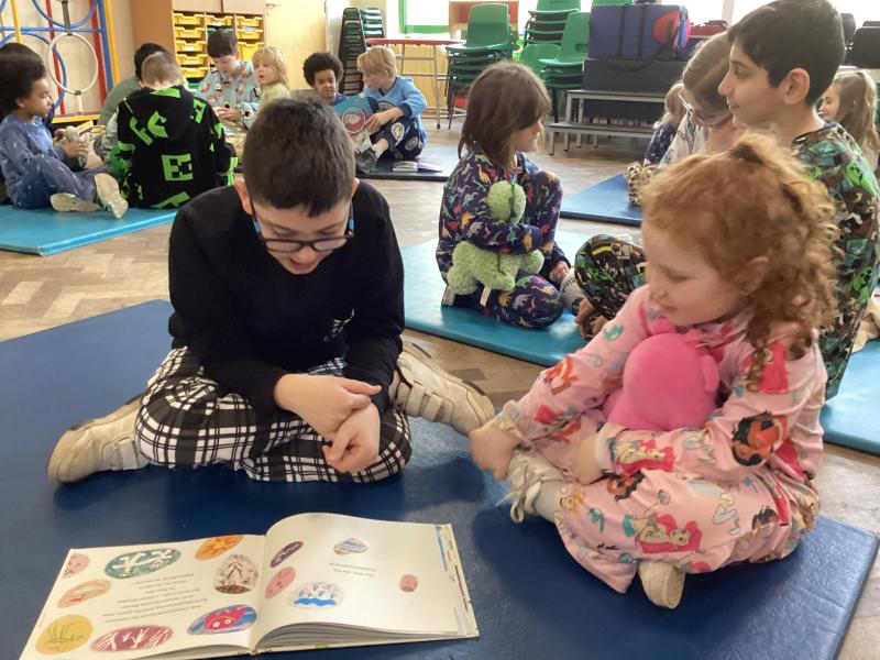 Year 6 & reception buddies share books on World Book Day