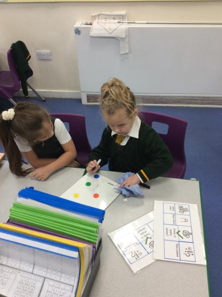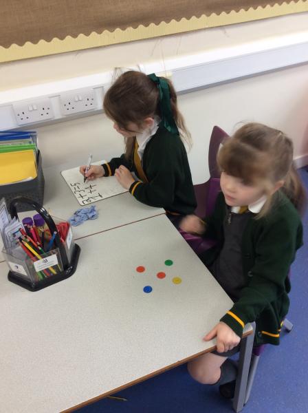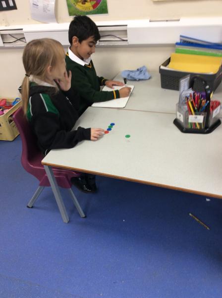 Working with their partner, Year One have been looking at the ways in which they can see a range of counters as several different number sentences. 5 is 1 and 4, 2 and 3, 3 and 2 and so on!